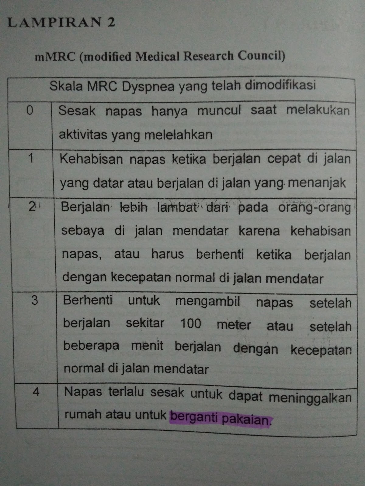 Pengukuran gejala sesak napas pada PPOK dapat dilakukan dengan menggunakan
